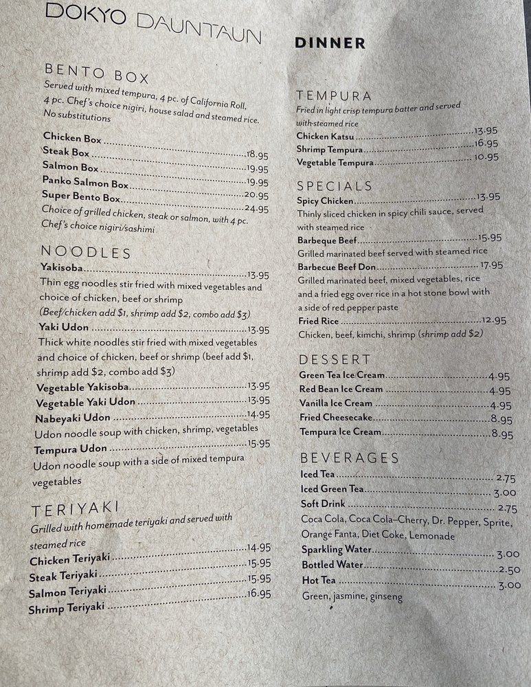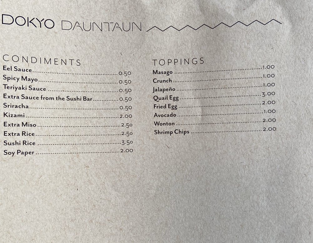 Introducing the Menu at Dokyo Dauntaun